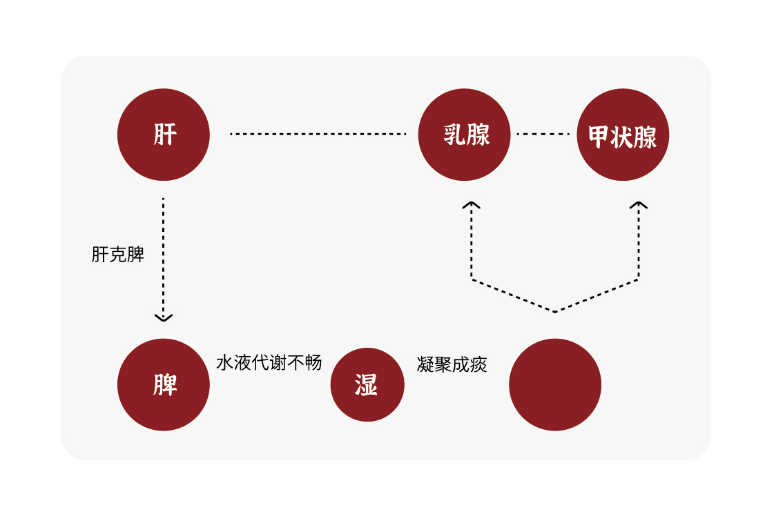 在这样的情况下,人体气机的周流无法顺畅进行,再加之肝气克脾,造成“垃圾”不能及时代谢,生成痰湿,更会加重气血运行的阻滞。堵在哪里,哪里就生出疙瘩、包块。