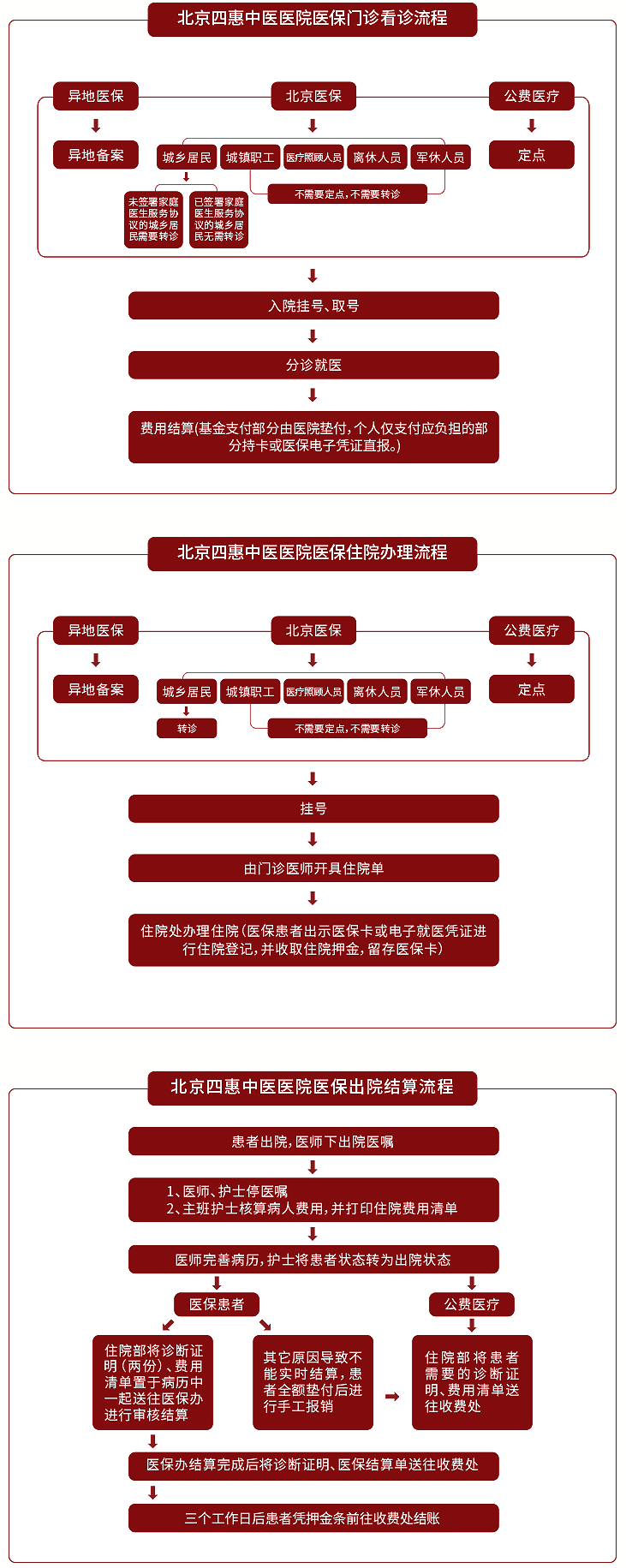 关于医保服务,患者来院就诊前,需了解以下几点:北京四惠中医医院成为医保定点医院之后,针对“在我院就医是否需要选定点?未持卡患者如何结算报销、就诊及结算流程?”等问题,下面一一为您解答!