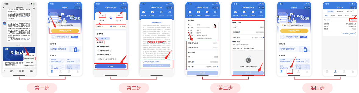 点击首页【备案记录】按钮,进入异地就医备案记录页面,实时查看备案进度。