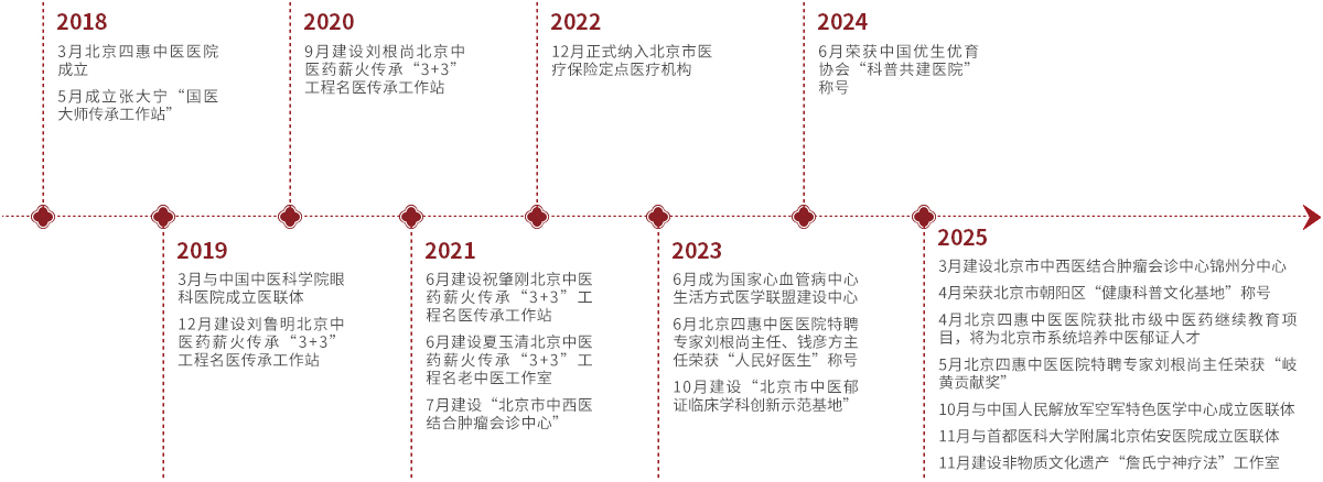北京四惠中医医院是中国中医科学院眼科医院、中国人民解放军空军特色医学中心、首都医科大学附属北京佑安医院的医联体单位,同时也是国家心血管病中心生活方式医学联盟建设中心,还是北京中医药薪火传承“3+3”工程——刘鲁明名医传承工作站(2019年)、刘根尚名医传承工作站(2020年)、祝肇刚名医传承工作站(2021年)及夏玉清名老中医工作室(2021年)建设单位,具备强大的医疗技术支撑。