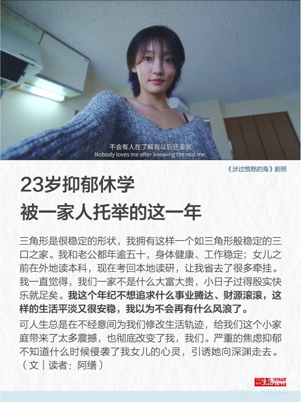 近期,《三联生活周刊》有读者投稿,分享了她原本听话、优秀的女儿患上焦虑、抑郁的故事: