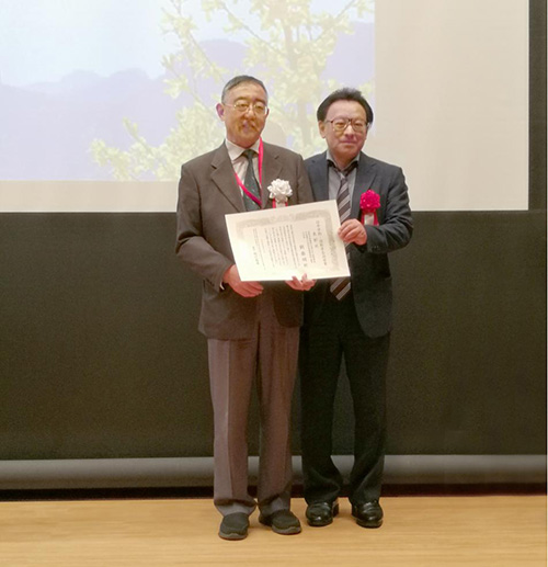 刘鲁明教授(左一)为福沢嘉孝教授颁发“国际交流贡献奖”