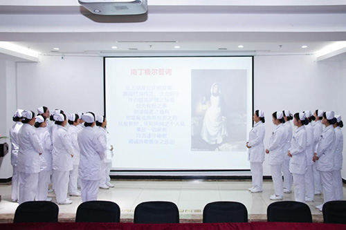 下午4点整,医院护理人员陆续赶到会议大厅,并一一填写签到表。大会的第一项是由护理前辈金玲老师带领全体护士重温《南丁格尔誓言》,领诵宣言意在弘扬南丁格尔救死扶伤的人道主义精神和为护理事业无私奉献的高尚品质,鼓励全体医护人员真正做到一心为患者服务的心态。随后护理部于主任汇报护理工作,并规划了以后的工作方向。