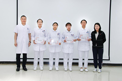 郭院长、黄院长为此次评选出来的优秀护士高世红、刘妮、贾亚楠、李甄颁奖,鼓励她们再接再厉,并告知全体医护人员要向她们学习,希望人人都成为优秀的白衣天使。