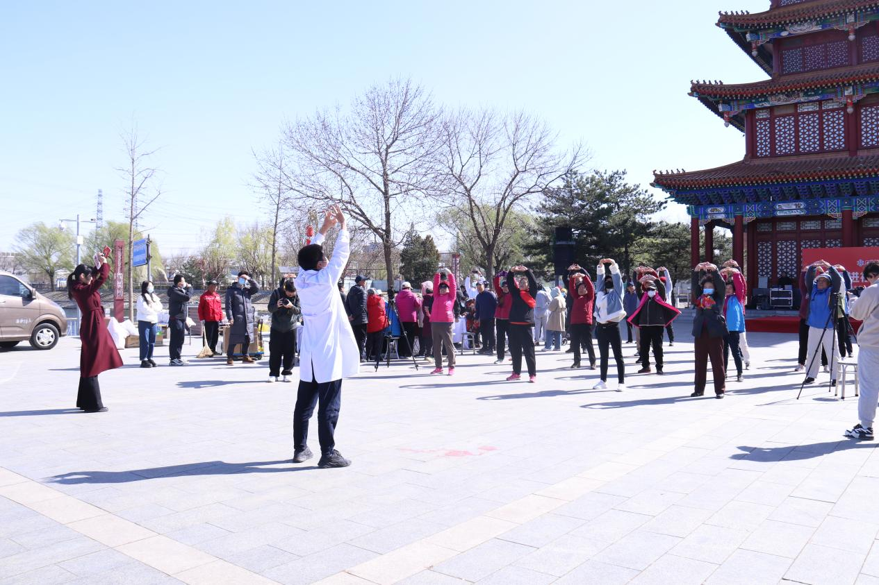 健康科普环节结束之后,北京四惠中医医院推拿科牛振坤大夫还带领居民现场跟练八段锦,大家一起练起来!