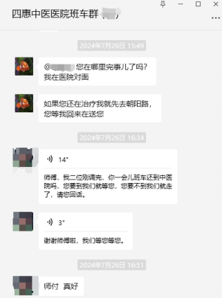 四惠中医医院班车群有患者叫车